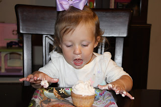 Cupcake time!!! She knew just what to do with the candles!